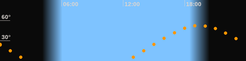 | Aufgang | 12:18 Uhr im Osten (αAz = 68°) |