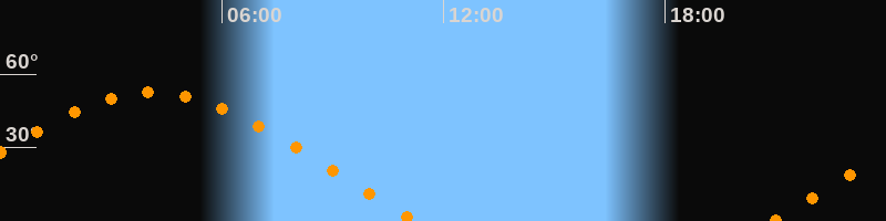 | Aufgang | 20:54 Uhr im Osten (αAz = 68°) |