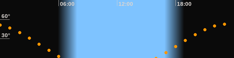 | Aufgang | 15:59 Uhr im Osten (αAz = 68°) |