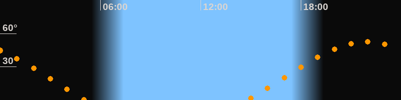 | Aufgang | 14:44 Uhr im Osten (αAz = 68°) |