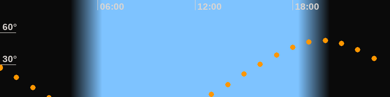 | Aufgang | 12:38 Uhr im Osten (αAz = 68°) |