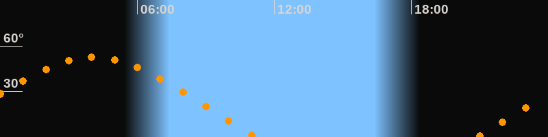 | Untergang | 11:14 Uhr im Westen (αAz = 292°) |