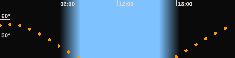 | Untergang | 08:05 Uhr im Westen (αAz = 292°) |