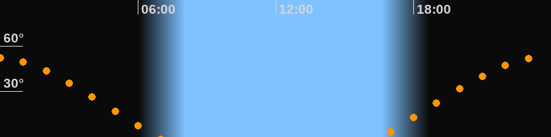 | Untergang | 06:54 Uhr im Westen (αAz = 292°) |