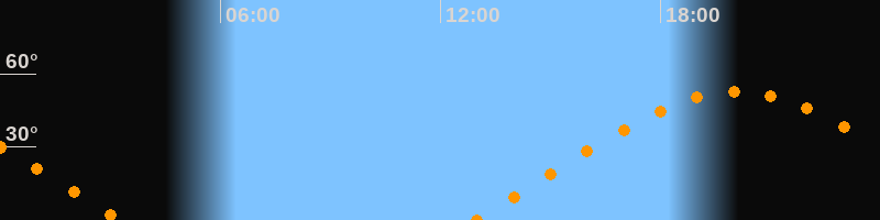 | Aufgang | 12:55 Uhr im Osten (αAz = 68°) |