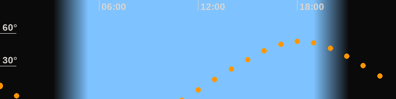 | Aufgang | 11:01 Uhr im Osten (αAz = 68°) |