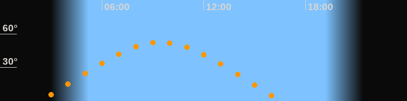| Höchster Stand (Kulmination) | 09:28 Uhr (h = 52,5°) |