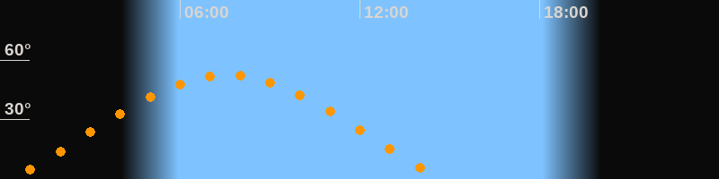 | Höchster Stand (Kulmination) | 07:34 Uhr (h = 52,5°) |