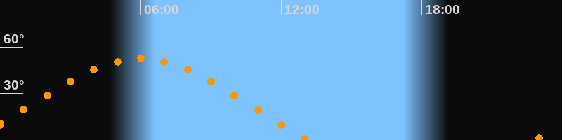 | Höchster Stand (Kulmination) | 05:59 Uhr (h = 52,5°) |