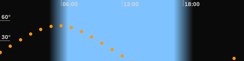 | Aufgang | 22:30 Uhr im Osten (αAz = 68°) |