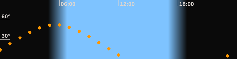 | Höchster Stand (Kulmination) | 05:36 Uhr (h = 52,5°) |