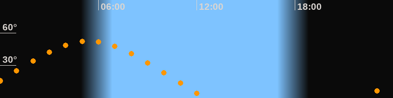 | Untergang | 12:33 Uhr im Westen (αAz = 292°) |