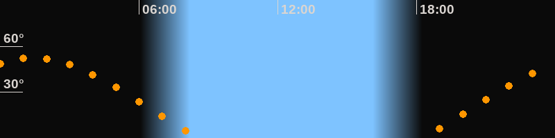 | Aufgang | 18:14 Uhr im Osten (αAz = 68°) |