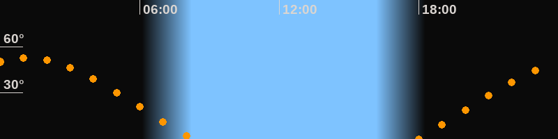 | Untergang | 08:18 Uhr im Westen (αAz = 292°) |