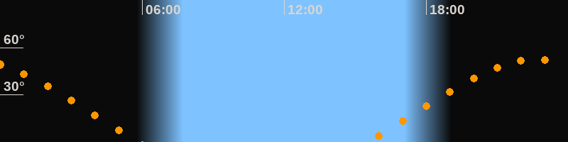 | Aufgang | 15:29 Uhr im Osten (αAz = 68°) |