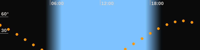 | Aufgang | 14:42 Uhr im Osten (αAz = 68°) |
