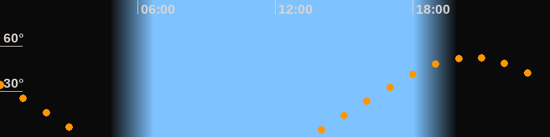 | Aufgang | 13:23 Uhr im Osten (αAz = 68°) |