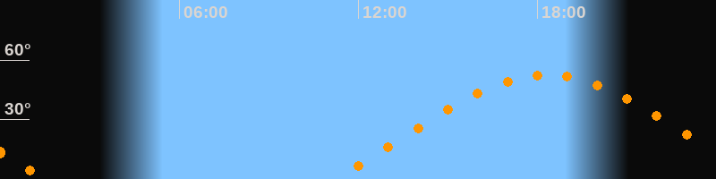 | Aufgang | 11:10 Uhr im Osten (αAz = 68°) |