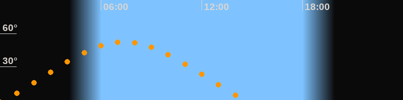 | Höchster Stand (Kulmination) | 07:23 Uhr (h = 52,5°) |