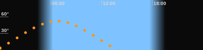 | Höchster Stand (Kulmination) | 06:43 Uhr (h = 52,5°) |