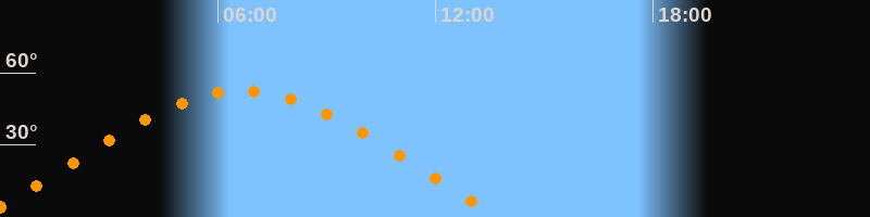 | Höchster Stand (Kulmination) | 06:40 Uhr (h = 52,5°) |