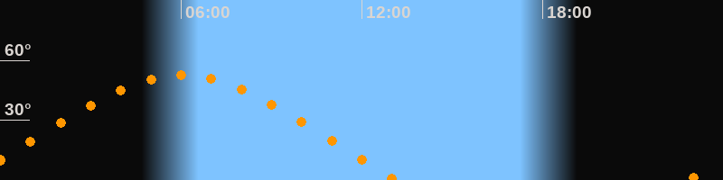 | Höchster Stand (Kulmination) | 06:01 Uhr (h = 52,5°) |