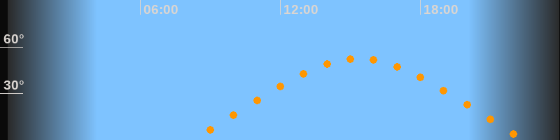 | Höchster Stand (Kulmination) | 15:20 Uhr (h = 52,5°) |
