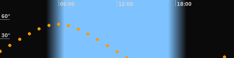| Höchster Stand (Kulmination) | 05:58 Uhr (h = 52,5°) |