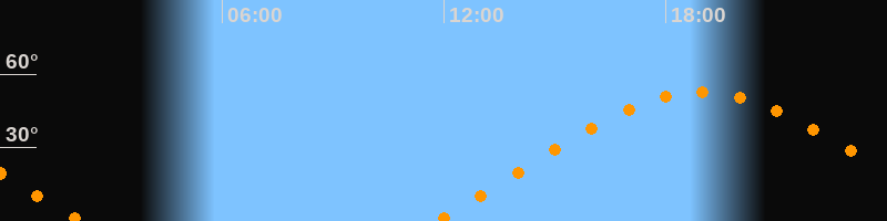 | Aufgang | 11:48 Uhr im Osten (αAz = 68°) |