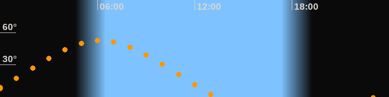 | Höchster Stand (Kulmination) | 06:11 Uhr (h = 52,5°) |
