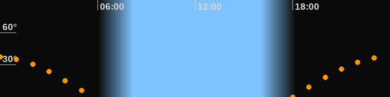 | Untergang | 05:44 Uhr im Westen (αAz = 267,5°) |