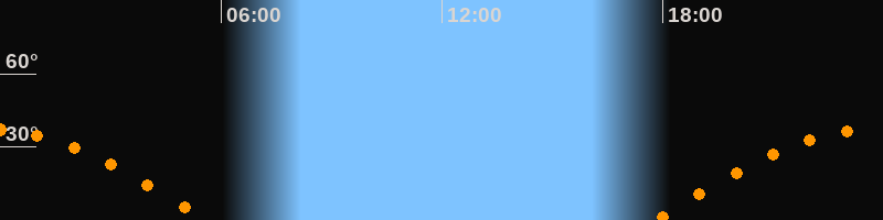 | Untergang | 05:37 Uhr im Westen (αAz = 267,5°) |