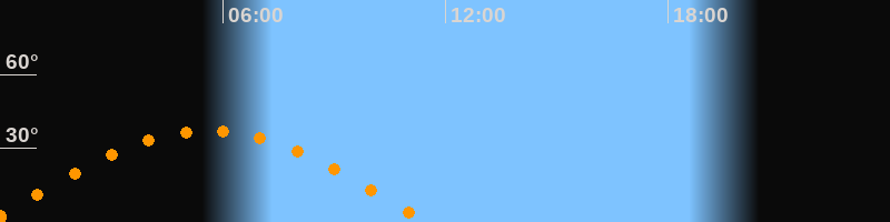 | Untergang | 11:29 Uhr im Westen (αAz = 267,5°) |