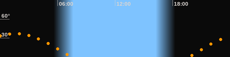 | Aufgang | 19:39 Uhr im Osten (αAz = 92,5°) |