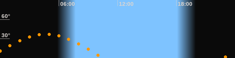 | Untergang | 10:32 Uhr im Westen (αAz = 267,5°) |