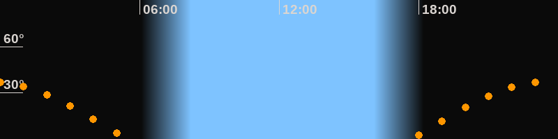 | Untergang | 05:29 Uhr im Westen (αAz = 267,5°) |