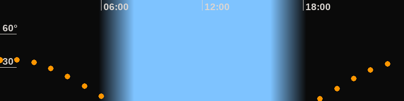 | Aufgang | 18:42 Uhr im Osten (αAz = 92,5°) |