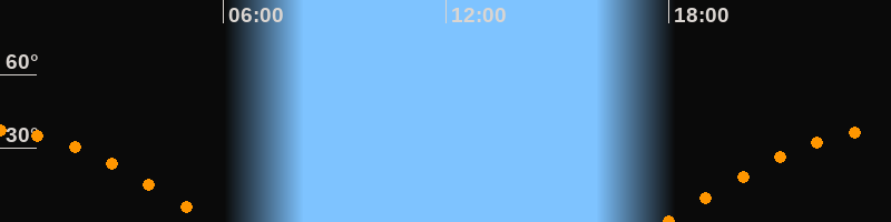 | Untergang | 05:43 Uhr im Westen (αAz = 267,5°) |