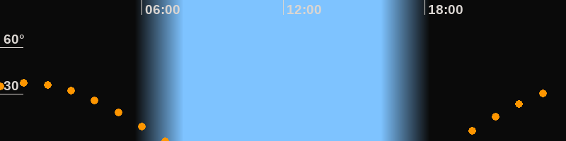 | Untergang | 07:04 Uhr im Westen (αAz = 267,5°) |