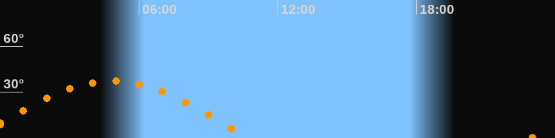 | Untergang | 10:43 Uhr im Westen (αAz = 267,5°) |