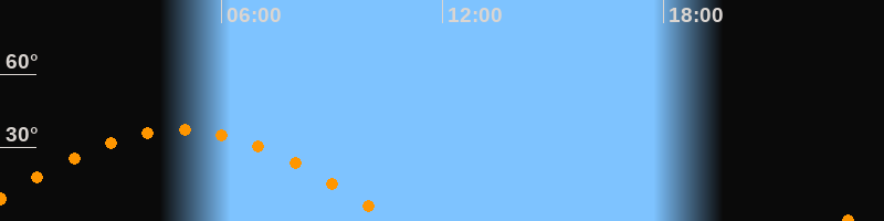 | Aufgang | 22:54 Uhr im Osten (αAz = 92,5°) |