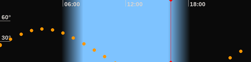| Untergang | 10:54 Uhr im Westen (αAz = 284,9°) |