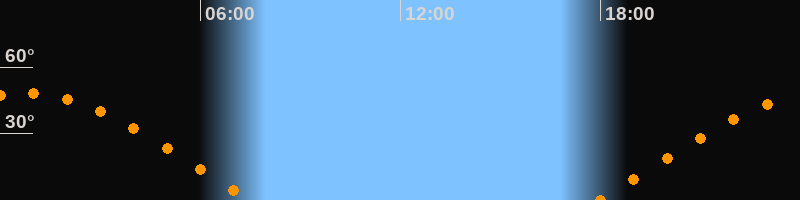 | Aufgang | 17:55 Uhr im Osten (αAz = 75,1°) |