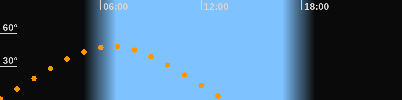 | Höchster Stand (Kulmination) | 06:40 Uhr (h = 48,2°) |