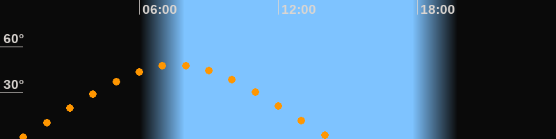 | Höchster Stand (Kulmination) | 07:34 Uhr (h = 48,2°) |