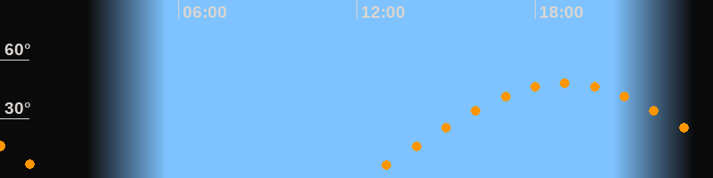 | Höchster Stand (Kulmination) | 18:59 Uhr (h = 48,2°) |