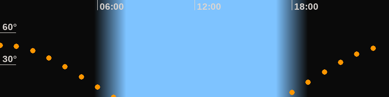 | Höchster Stand (Kulmination) | 00:13 Uhr (h = 48,2°) |