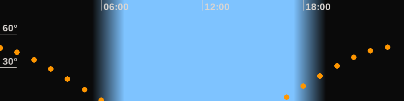 | Höchster Stand (Kulmination) | 23:18 Uhr (h = 48,2°) |