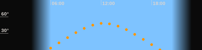 | Höchster Stand (Kulmination) | 12:20 Uhr (h = 48,2°) |