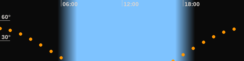 | Höchster Stand (Kulmination) | 23:44 Uhr (h = 48,2°) |